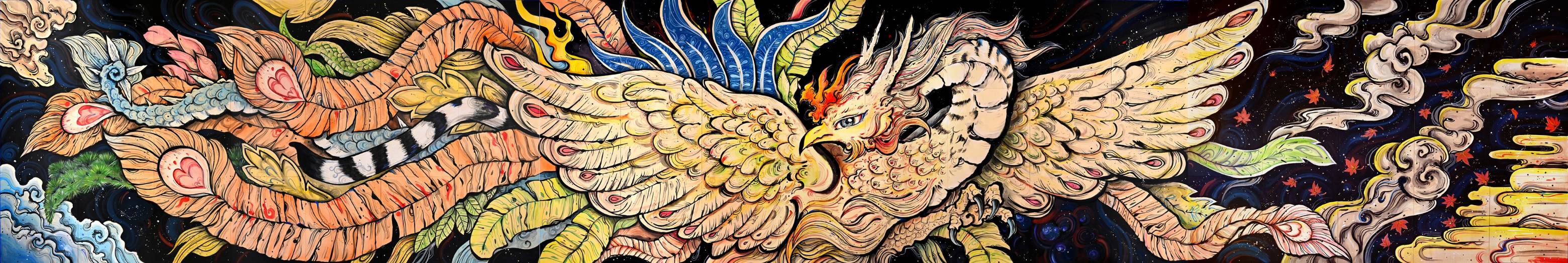 日本一の天井絵師 斎灯サトル氏の 『舞紅葉 阿吽双龍図』襖絵があります